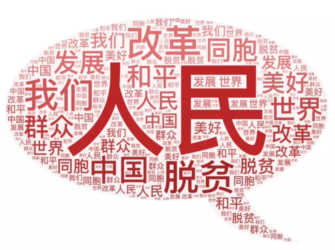 我將無我,不負人民。“人民”是習(xí)主席心中永遠的牽掛,這一點在他歷次的新年講話中體現(xiàn)得特別明顯。通過對6次新年講話的文本進行詞頻分析后發(fā)現(xiàn),“人民”一直是習(xí)近平新年賀詞當中的高頻詞,除此之外,“我們”“群眾”“改革”“脫貧”等詞語也多次出現(xiàn)。