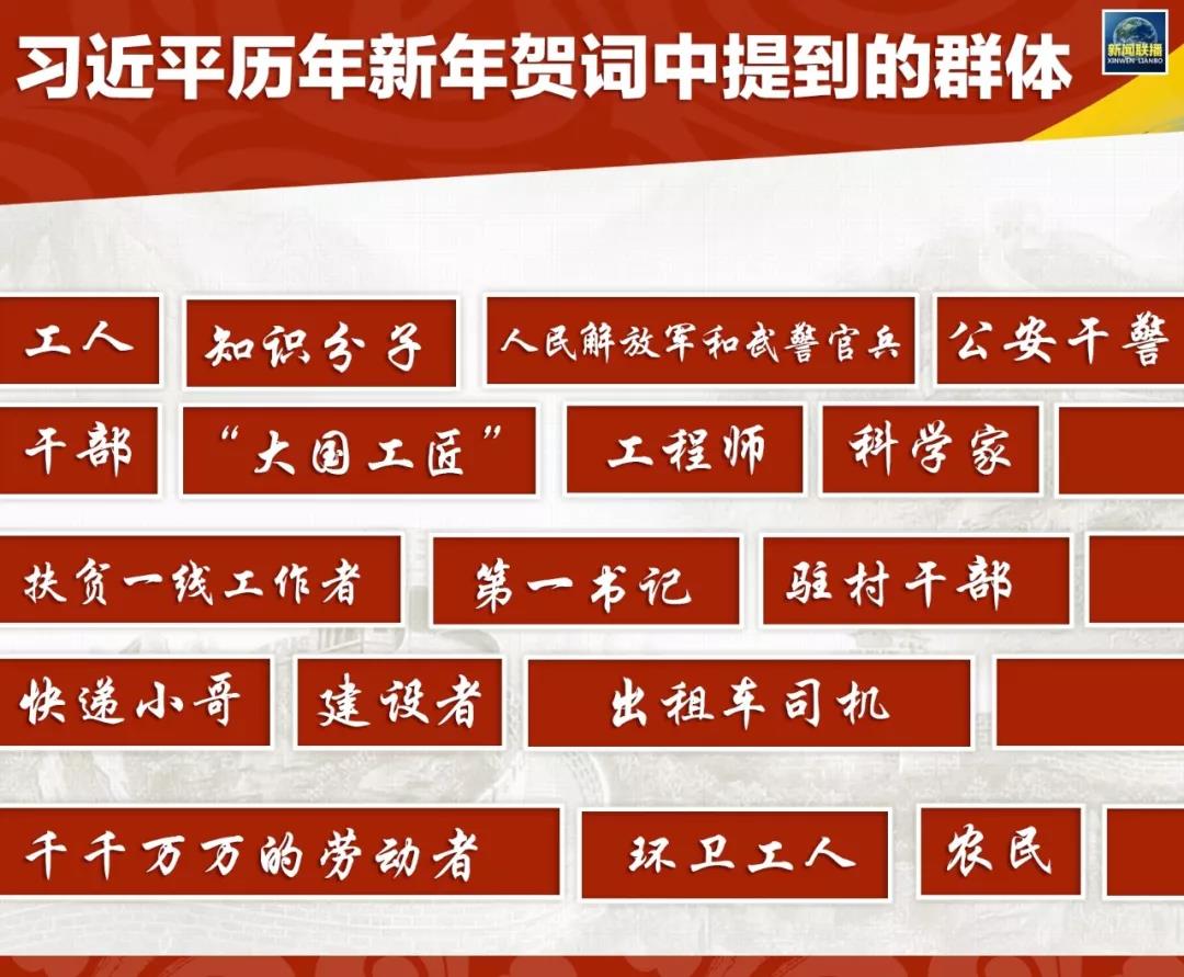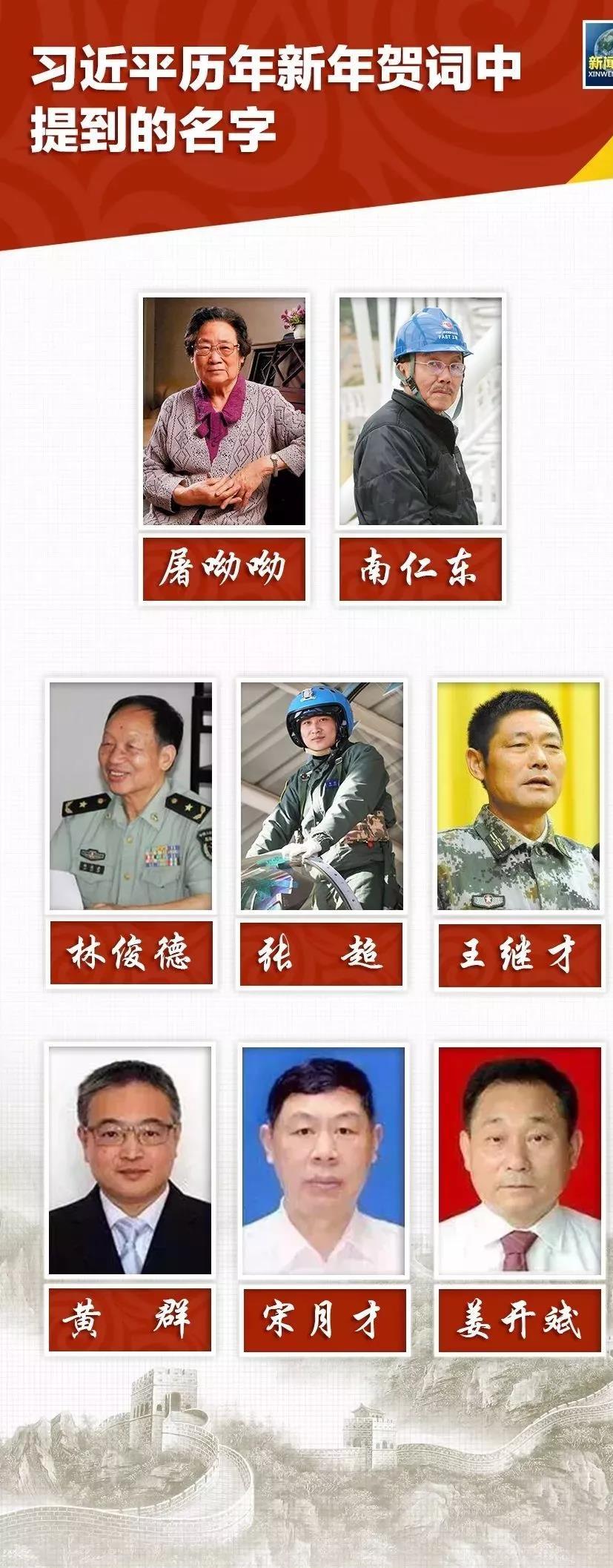 不僅是為人民點贊,習(xí)主席在6篇新年賀詞中也提到了一些具體的名字,并為一些群體點贊——